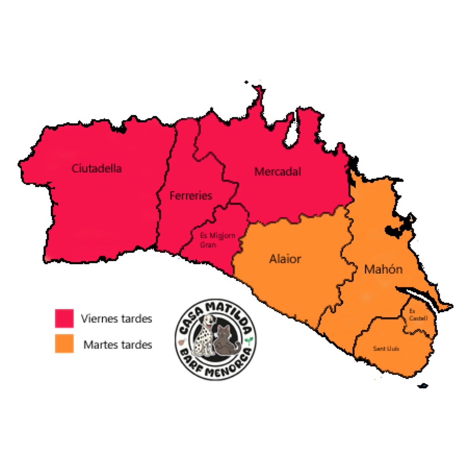 Te entregamos tu pedido en toda la isla de Menorca de forma totalmente gratuita. Los días de entregas son (festivos excluidos):